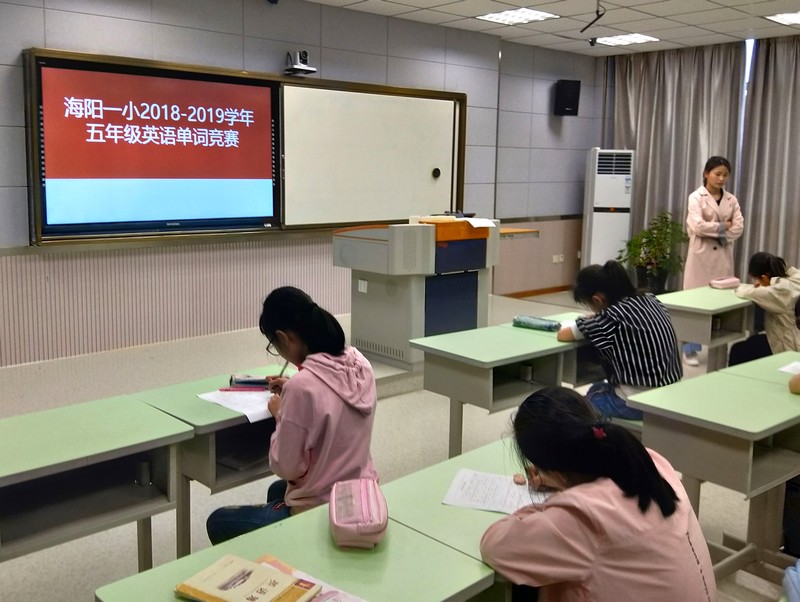 为增强学生学习英语的兴趣,营造积极向上的学习氛围,提高学生综合运用语言的能力,海阳第一小学5月15日,在录播教室举行了小学五年级英语单词听写大赛,参赛对象为五年级全体学生,以班级为单位,经过初赛,每班选出5名同学进入决赛。