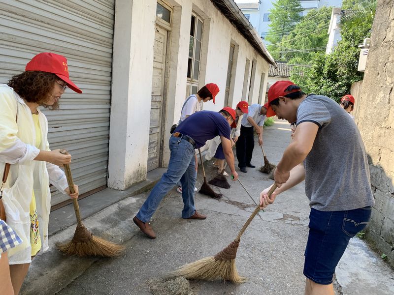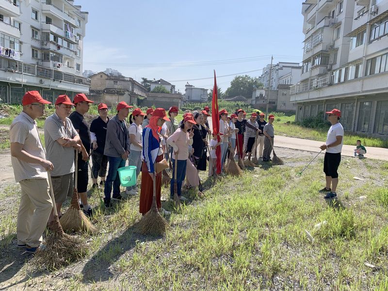 党员教师志愿者们手持劳动工具、排着队伍在鲜艳党旗的指引下来到所包保辖区。胡晓宇校长就本次志愿服务活动的主题、内容和有关事项进行了强调,汪霞副书记进行了活动分工,明确了各小组任务。党员们分别在草堂支巷、胜西小区二期、万全村、桂花树巷进行创建环境知识宣传、清除小广告和清理垃圾活动等。两个小时共发放传单近百份,清除“牛皮癣”六十多处,清理垃圾两大拖拉机。虽然烈日炎炎,但大家干得热火朝天,不怕脏不怕累,甚至怀着身孕、身体不适的党员教师都积极参与其中,得到了周边群众的广泛赞誉和支持。
