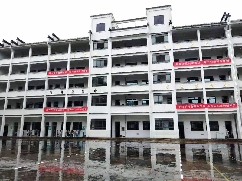开学伊始,学校悬挂教育民生工程宣传横幅宣传民生工程。