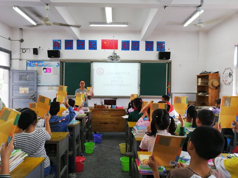 9月2日,各班举行了新学期免费教科书发放仪式,宣传“两免一补”相关政策,广泛宣传各项民生工程,让广大师生了解实施教育民生工程的意义。