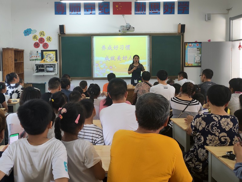 为了让家长全方位了解孩子在校学习和生活情况,加强学校与家庭教育的协作,9月12日下午,海阳一小召开了“养成良好习惯 成就美好人生”为主题的新生家长会。