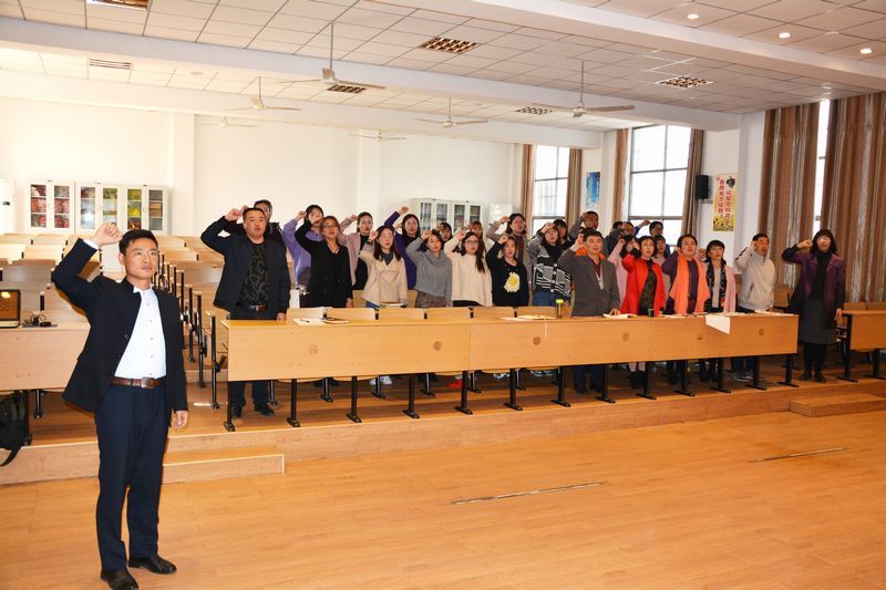 胡晓宇校长带领全体参会教师庄严宣誓,要争做新时代“四有”好老师。教导主任汪仲尧宣读师徒结对名单及具体要求。叶建民、汪霞两位副校长为指导教师颁发聘书。