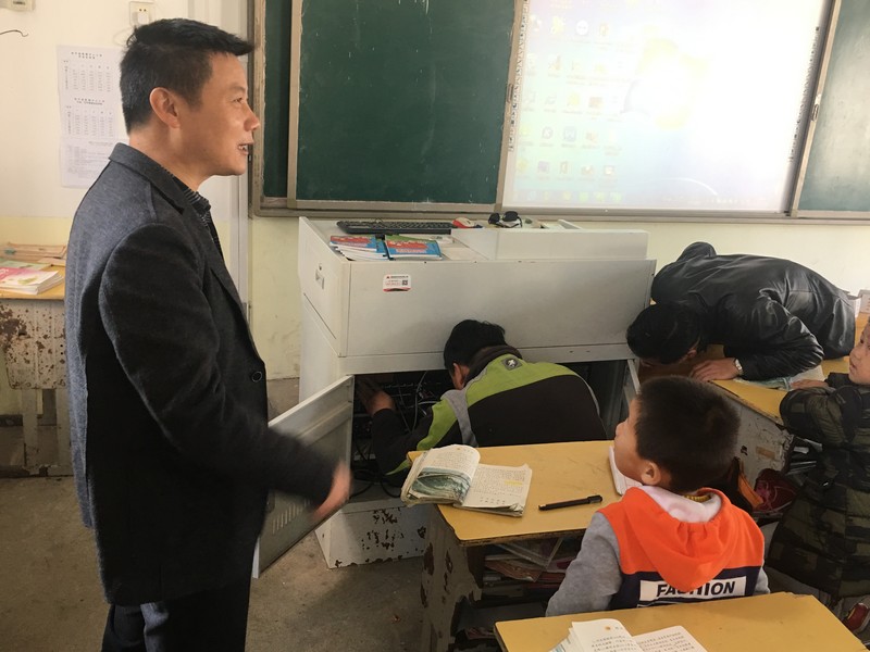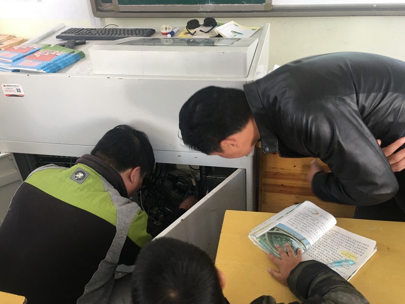 2017年11月9日,海阳一小校长、在线课堂课题组组长胡晓宇,县电教馆馆长胡有为,海阳一小网管中心主任、课题组副组长程新凯,专程前往陈霞中心小学、回溪小学、泮路教学点,对在线课堂接收教室设备进行检查维护及设备调试,为更好开展在线课堂常态化教学提供线上线下技术支持,同时也是为即将举行的首届安徽省在线课堂教学应用评比网络赛进行前期准备工作。