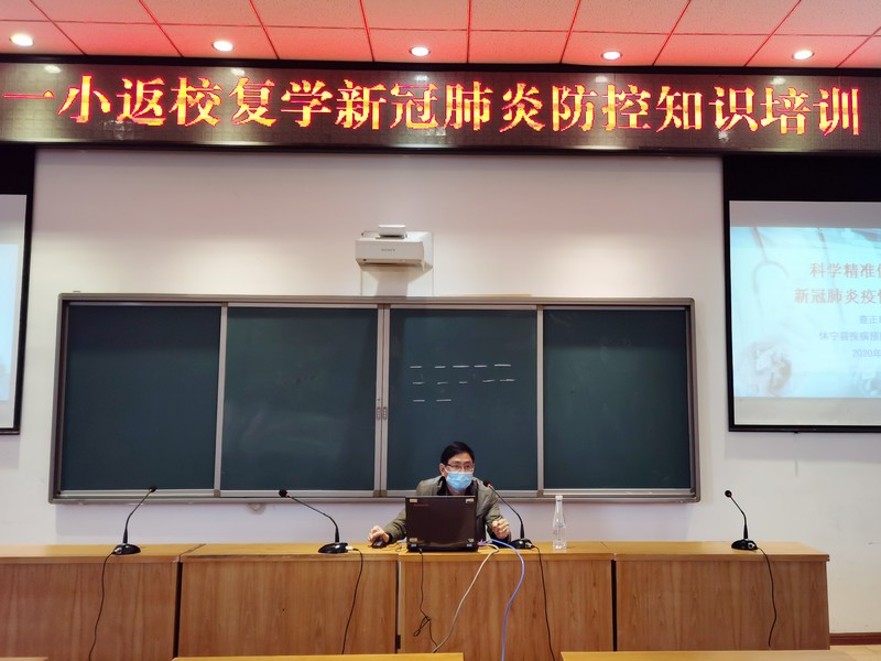 4月20日上午,县疾控中心査正时主任为参加返校复学演练的教师再次进行了“科学精准做好学校新冠肺炎防控工作”的培训,培训结束后,开展了学生入校、教室突发情况、学生就餐等模拟演练。