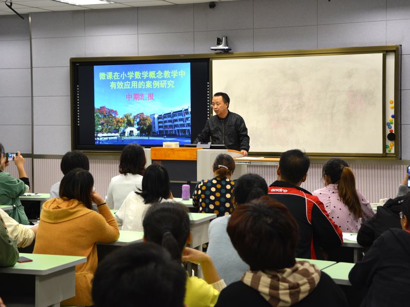 《核心素养理念下提升小学生口语交际能力的实践研究》课题组负责人方素芬代表课题组汇报课题结题准备情况;程胜利、叶朝晖、王文华、方红燕等分别代表《微课在小学数学概念教学中有效应用的案例研究》、《核心价值观在部编小学语文教材中应用的案例研究》、《小学数学综合与实践教学中有效应用微课的研究》、《基于部编教材培养学生读书意识的研究》课题组做中期研究汇报。